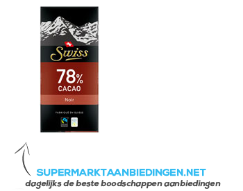 Swiss Finest noir 78 % aanbieding Bestel vandaag nog deze zeer aantrekkelijke Swiss Finest noir 78 % aanbieding. Koop alle supermarkt aanbiedingen snel online en laat de koerier alle zware boodschappen morgen bij jou afleveren. Via internet vind je altijd de beste aanbiedingen. Online heb je een enorme keuze qua supermarkten. Zo bestel jij altijd ... Lees meer